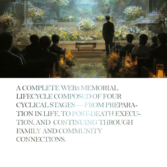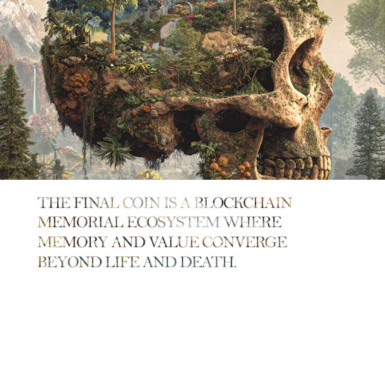 The platform of THE FINAL COIN is built on the Solana blockchain using a multi-layer architecture, where five key layers — NFT issuance, will storage, DAO governance, real-economy linkage, and metaverse expansion — operate in a fully interconnected structure. 1. Blockchain Layer Powered by Solana’s high-speed (50,000+ TPS) and low-cost infrastructure, this layer handles NFT issuance, transactions, smart contract execution, and DAO voting. All data, including wills and assets, are permanently recorded on-chain, ensuring immutability and trust. 2. NFT & Asset Layer Users create NFTs containing their messages, media, wills, or digital goods. Each NFT includes encrypted access for designated recipients, activating smart contracts that reveal or transfer the data posthumously. 3. DAO Governance Layer NFT holders participate in ecosystem governance through the DAO, voting on fund operations, real-world partnerships, and revenue distribution — enabling a fully decentralized, community-driven structure. 4. Real Economy Layer Revenues from NFT and goods sales flow into the Memorial Smart Fund, which supports purchases and maintenance of real-world assets such as columbariums or memorial parks. The fund also distributes periodic returns to designated family members, forming a Perpetual Wealth Flow system. 5. Metaverse Layer The project envisions virtual cemeteries and memorial halls where users’ NFTs — wills, images, and videos — are exhibited in interactive 3D spaces, synchronizing real memorial sites with blockchain data in a hybrid memorial experience. In essence, THE FINAL COIN integrates memory preservation, economic circulation, and the expansion of human existence into one unified Web3 ecosystem — a complete digital life management platform where emotions and assets continue seamlessly beyond death.
